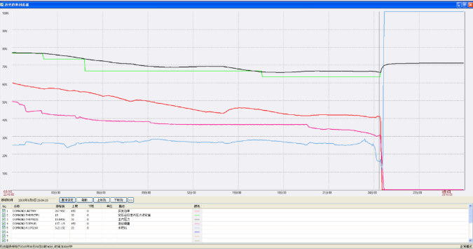 23时04分 负荷减至250MW,给水泵发生抢水,B给水泵再循环调门全开,给水流量由737 t/h降至439t/h,给水流量低低保护动作,锅炉灭火,汽轮机跳闸、发变组与系统解列。10日13点58分机组与系统并列。故障停运14.9小时,损失电量约835万千瓦时。