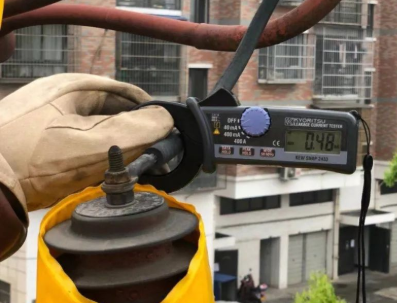 3)测流。使用微安级高压钳形电流表测量避雷器引线电流,避雷器性能正常时,其泄露电流应为μA级。