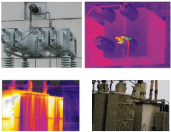 牵引变电所有变压器、熔断器、断路器以及所有配电线等,接触网有很多接头、回流线等设备。使用红外热像仪可发现接头松动或接触不良、套管缺油、三相负载不平衡等隐患。变压器箱体由于油路管道堵塞、涡流损耗、内部异常、铁芯绝缘不良等造成发热,红外热成像仪对变压器箱体的检测可以使变压器箱体始终处于正常温度,避免变压器因温度过高而损坏。