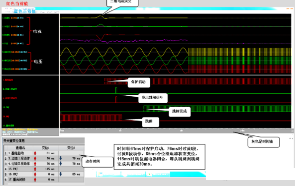 2、持续时间。从故障发生到故障切除的时间,即波形从异常到正常的时间,时标起始位置一般从0开始,如持续100ms。