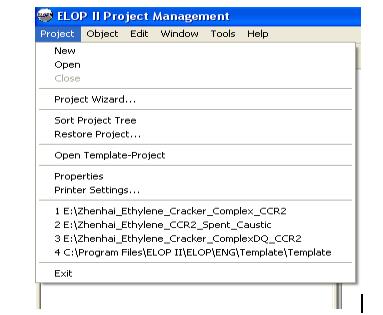 桌面双击ELOPII或开始/all programs/ElopII启动软件(启动软件需密码狗),启动软件后选择顶部菜单PROJECT默认选项open project(打开项目)在左侧项目栏中选择PROJ项目卡,