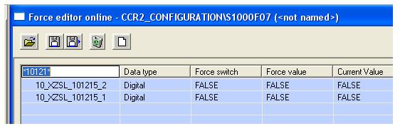 如果开关量,点击强制列表里Force switch为强制允许开关,点击FALSE为TRUE允许强制,Force value False为0,Ture为1,点击完成强制操作后按下右下角Download实现强制。具体查看状态,点击右下角,start refresh(开始刷新) ,查看 FORCE SWITCH 为 TRUE  ,FORCE VALUE 为 强制值。取消强制同理,强制列表里Force switch为强制允许开关,点击TRUE为FALSE不允许强制,Force value里强制值恢复最初状态,最后按下Download实现强制取消。(注意,只有先stop refresh 才能Download)