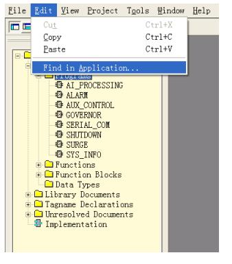 Find in application,然后输入需要查找的位号,例如查找TI101217,只要输入101217即可。他是整个工程里输入位号的查找。