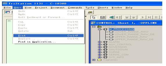 FIND 是在打开具体的双击AI-PROCESSING→双击三P三单点逐个查找后输入需要查找的位号,例如查找TI101217,最好位号具体些