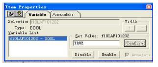 强制方法:点击“Disable”,并在“Disable”上方的输入框中输入需要强制的值后,再点击“Confirm”。强制成功以后,对应的位号和描述的文字会变成红色。