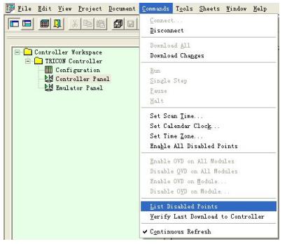 ⑵然后在菜单中点击“Command”出现下拉菜单,点选“List Disable Points”。