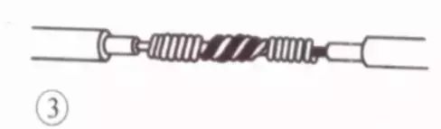 ②将两根线头相对插入并穿出压接管,使两线端各自伸出压接管25~30mm。