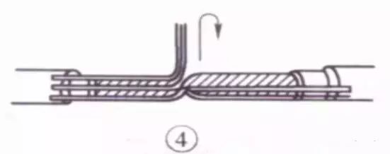 ⑥接着把处于紧挨平卧前邻近的2根芯线折成90° ,并按步骤⑤ 方法加工。