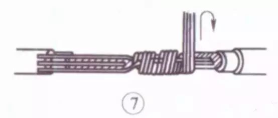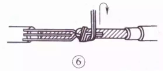 ③将每个线头在另一芯线上紧贴并绕6圈,用钢丝钳切去余下的芯线,并钳平芯线末端。