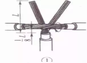 ④先在一端把邻近两股芯线在距叉口中线约3根单股芯线直径宽度处折起,并形成90°。